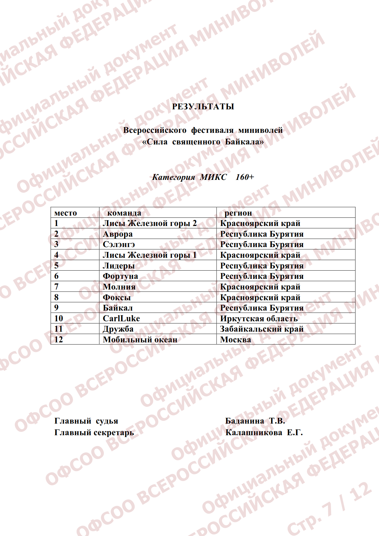 От имени Всероссийской Федерации Миниволей, благодарим каждого участника, судейский корпус, оргкомитет, региональные отделения и всех причастных к прошедшему прекрасному Фестивалю!