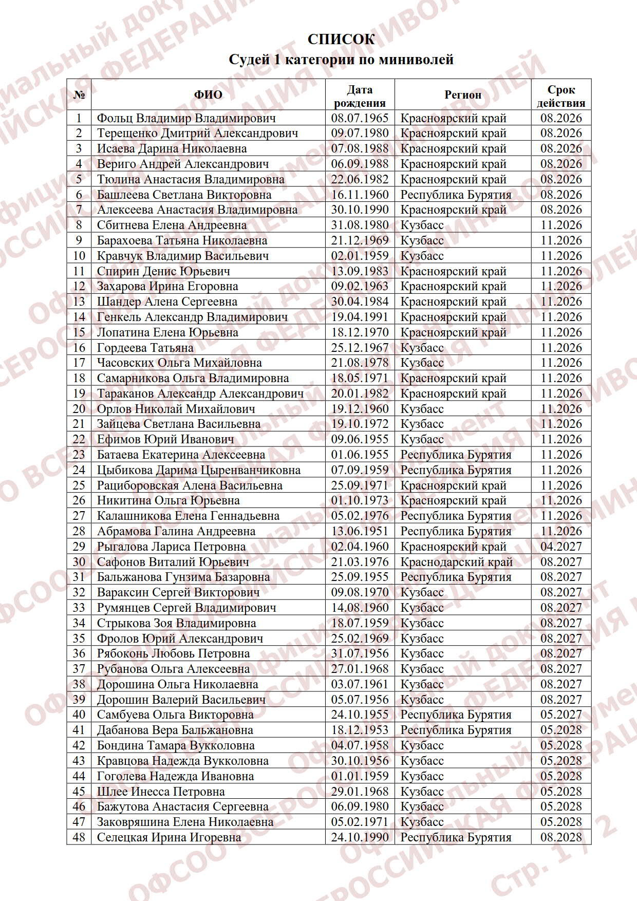 Обновленный список судей I категории, имеющих право судить Всероссийские соревнования